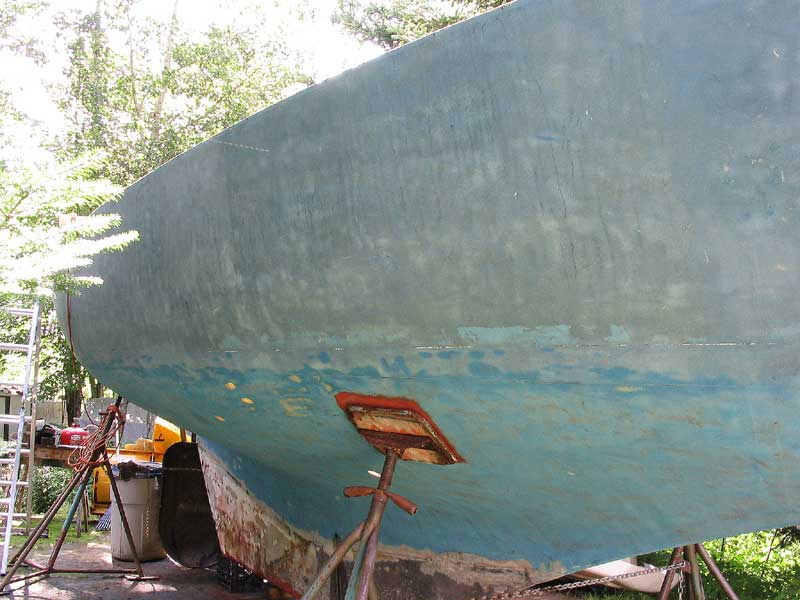 vinyl lettering on the transom.) With all the old hull paint removed,