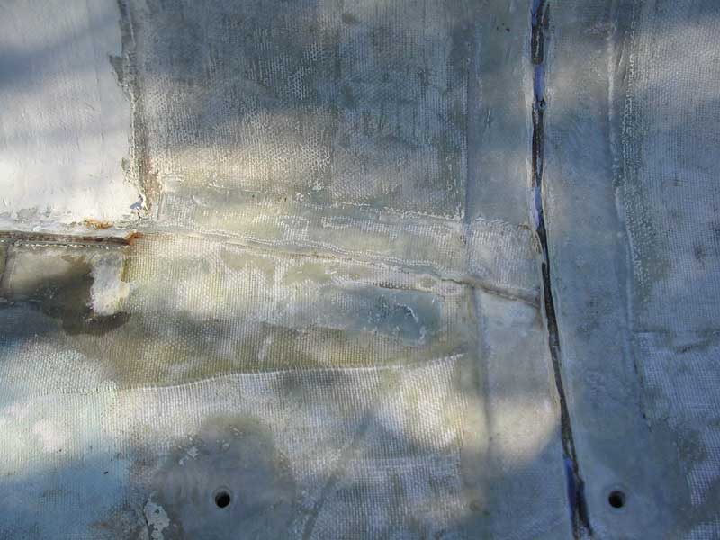 mess of old, peeling paint, sloppy old tabbing, and bulkhead remnants. All