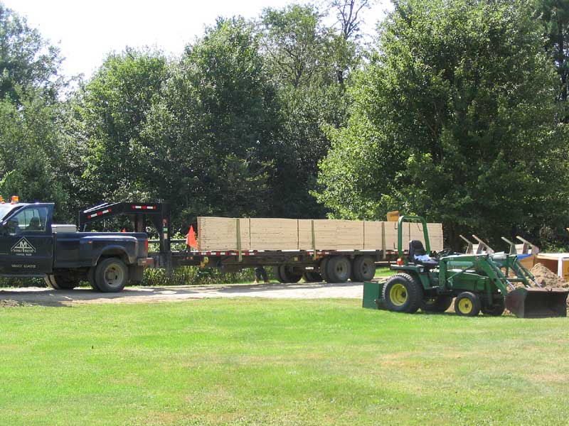 Earlier, when I was out, another lumber delivery arrived--sheathing for the