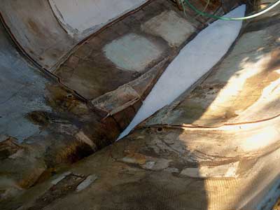 bit of the old toerail and deck. I also cut out the old engine beds.