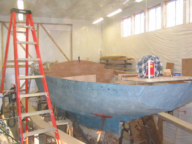 the shop to begin work until nearly noontime. Sitting in the hull and