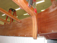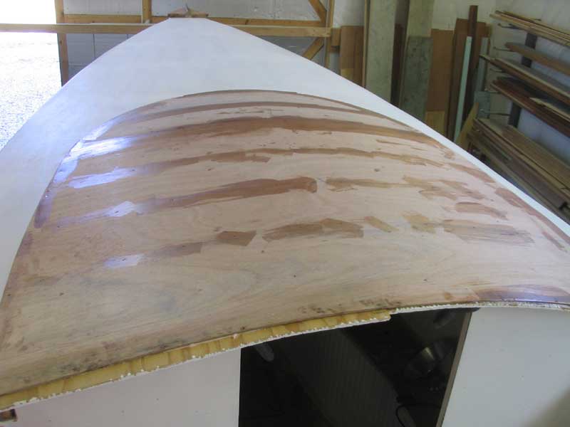 the second layer of plywood to the cabin trunk overhead, using 7mm Meranti for