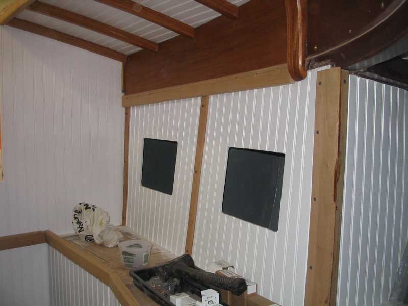 I continued work on the interior trim, and, after sanding the fiberglass on the