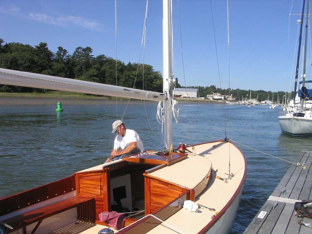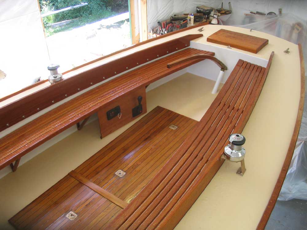 incomplete aspects of the boat at this time was the mainsheet and traveler