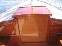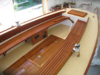 installed mahogany planks on the two bilge access hatches in the cabin sole,