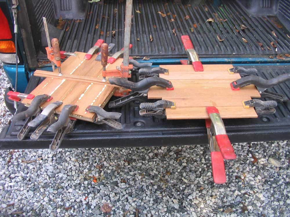 When the glue securing the planks to the bilge access hatches dried, I trimmed