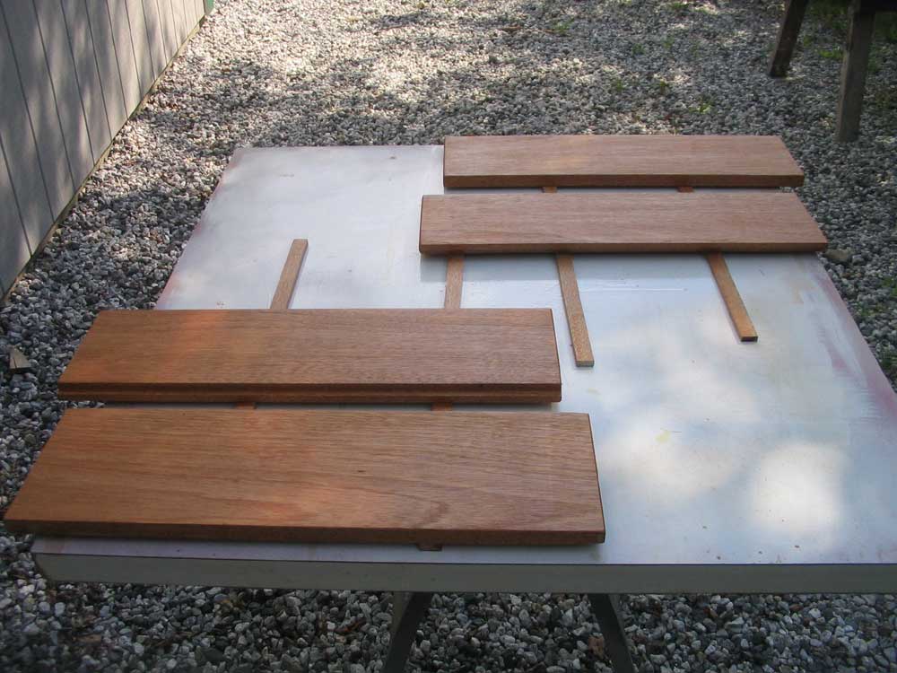 From some 7-1/2" wide mahogany, I cut four lengths to about 25" long, or a