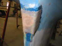 ground off some loose fiberglass and filler from some long-ago repair attempt.