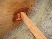 where they disappeared into the hull, and at all the areas where the beams