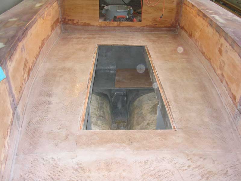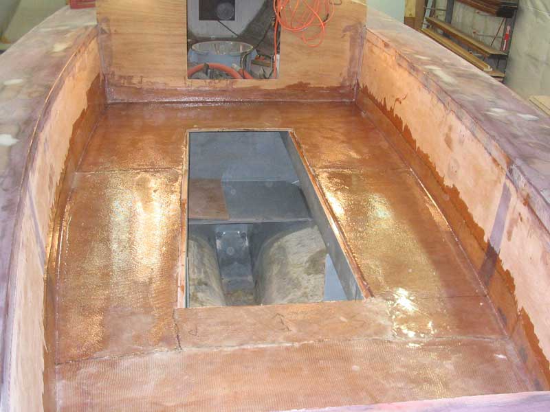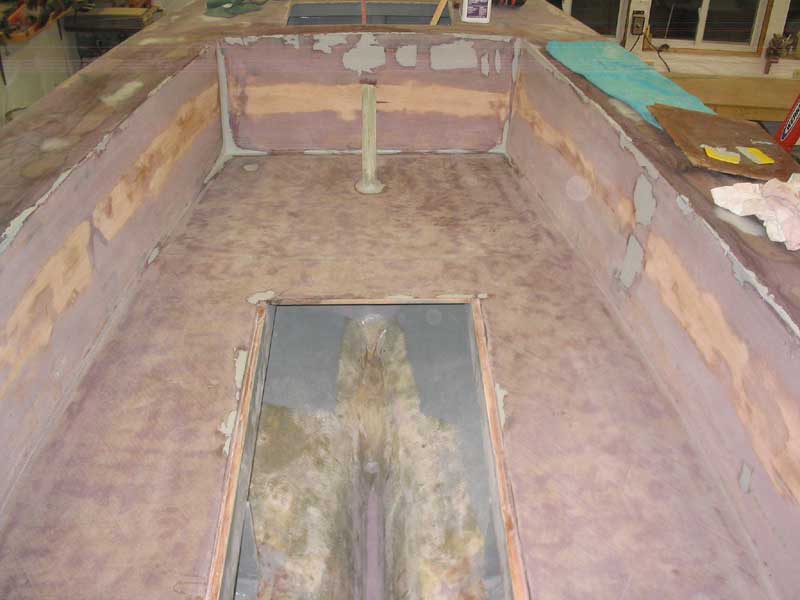 structure; as with the deck sheathing, the fiberglass cockpit sole was