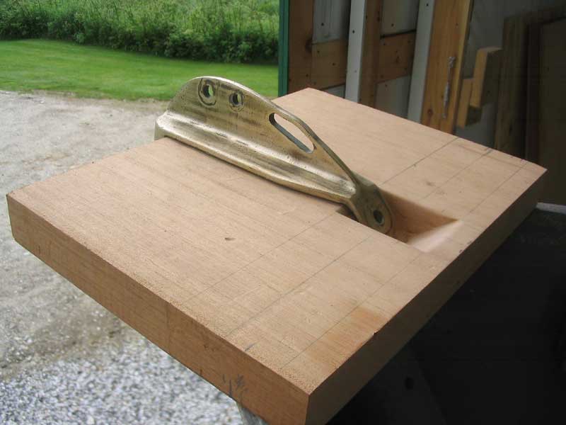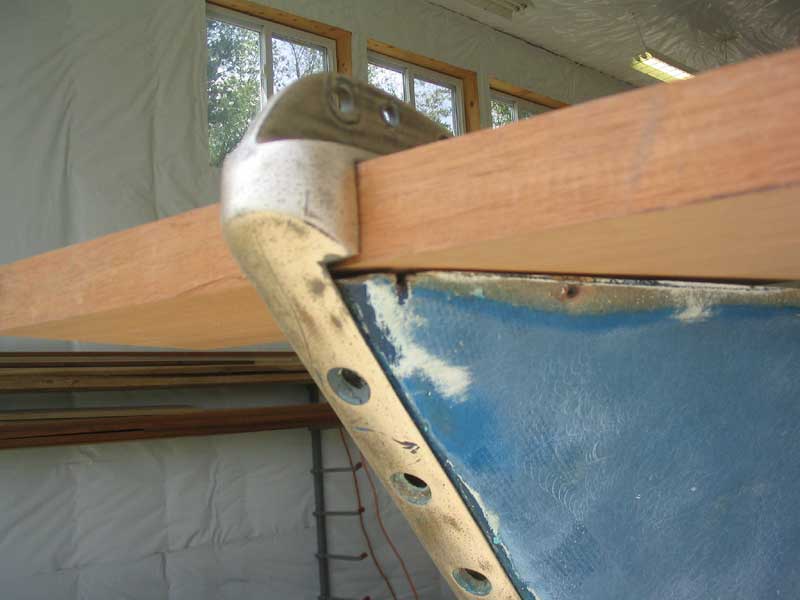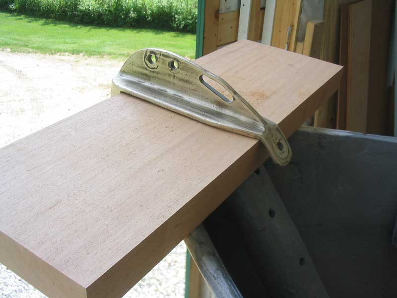 mahogany breasthook some inches aft of the bronze stem casting, which would