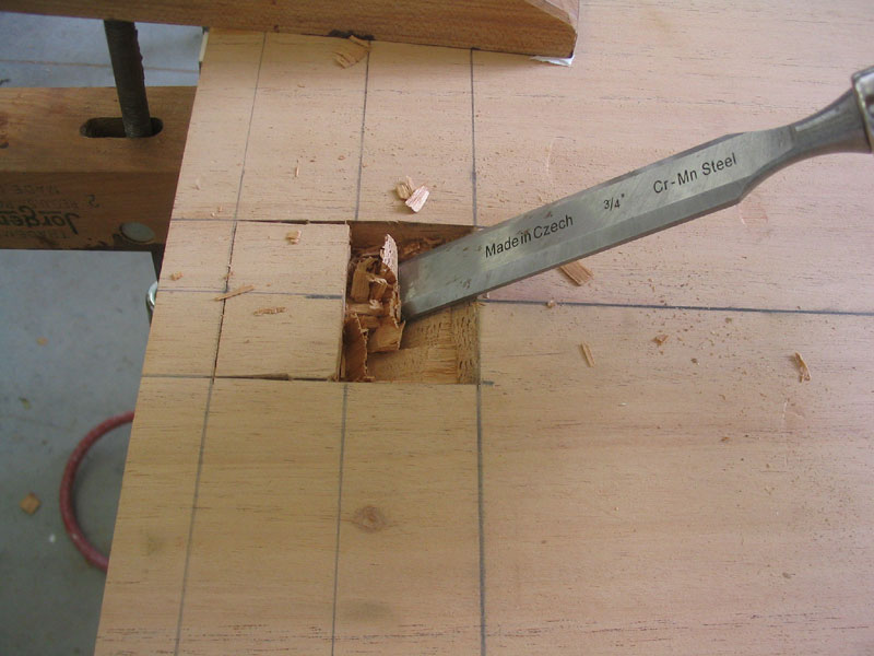 gauge to determine the proper angle of the cuts. Using a chisel, I