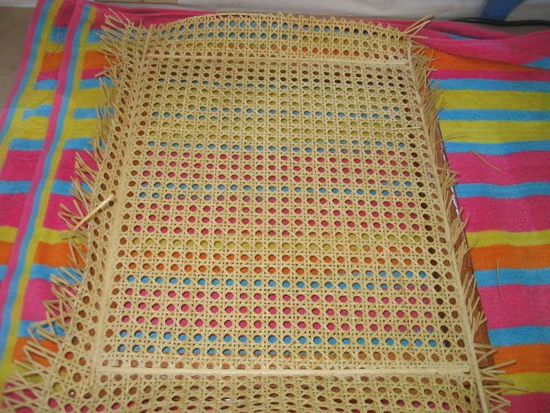 materials on hand, so I cut a piece of the prewoven cane material somewhat