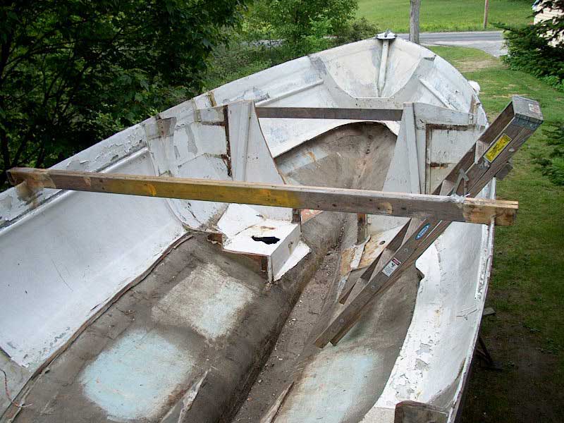 down the remaining forward bulkhead (the mast area) to remove the ragged