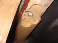 to me.I hate when this happens! Sometimes, one just gets the angle of the nail gun wrong, or perhaps the nail found a hard spot that forced it off its desired course. Sigh. |