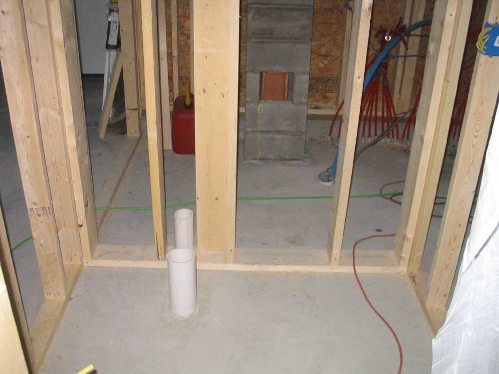 flush and sink drains beneath the concrete slab. |