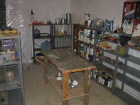 shelving, benches, and supplies from the old shop and