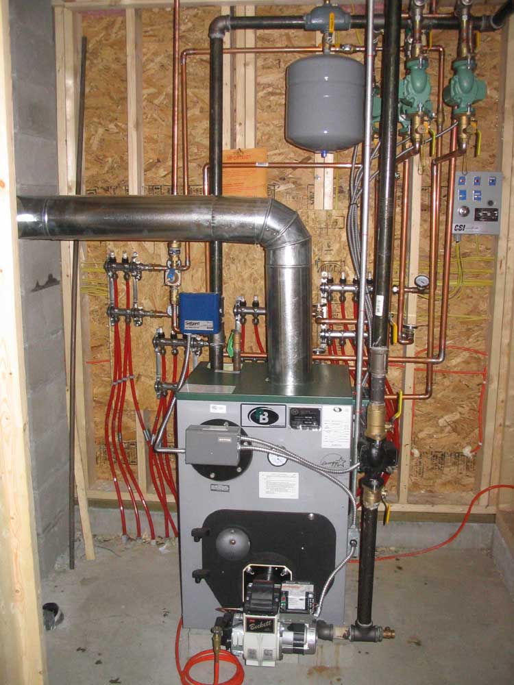 helpers installed the boiler, oil tank, and the myriad