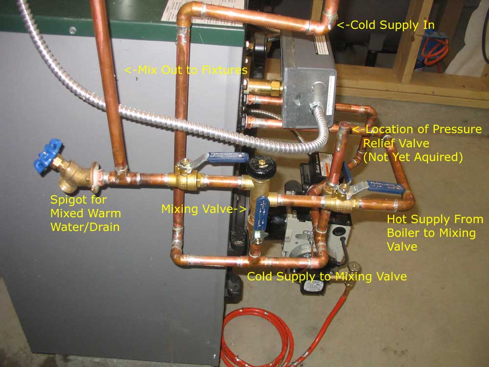run over to the tankless hot water coil in the boiler.